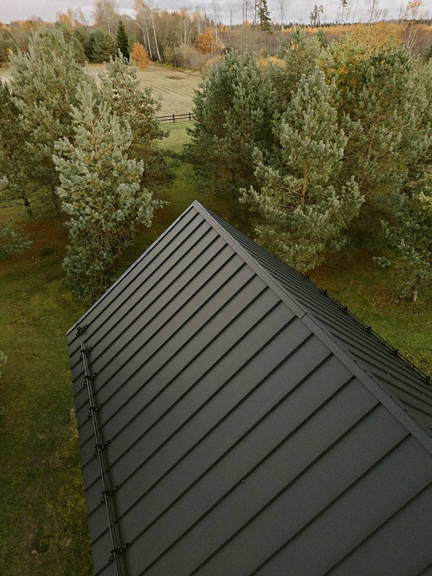 Ēkai izraudzīts Toode jumts 0,6 mm biezumā, Rr33 tonī.