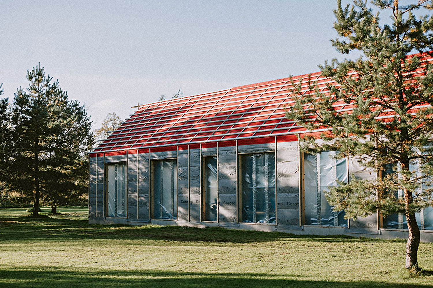 «Pirms uzsākt lielos darbus, vispirms bija jāparūpējas par to, lai sētā varētu piebraukt smagā tehnika. Jau iepriekšējā vasarā izbūvējām ceļu un bijām gatavībā ķerties klāt pamatu pēdas veidošanai. Bet pavasaris pērn bija reti slapjš. Būvbedre jau izrakta, taču lietus nemitējās. Nekas cits neatlika, kā no māliem izsūknēt mitrumu.