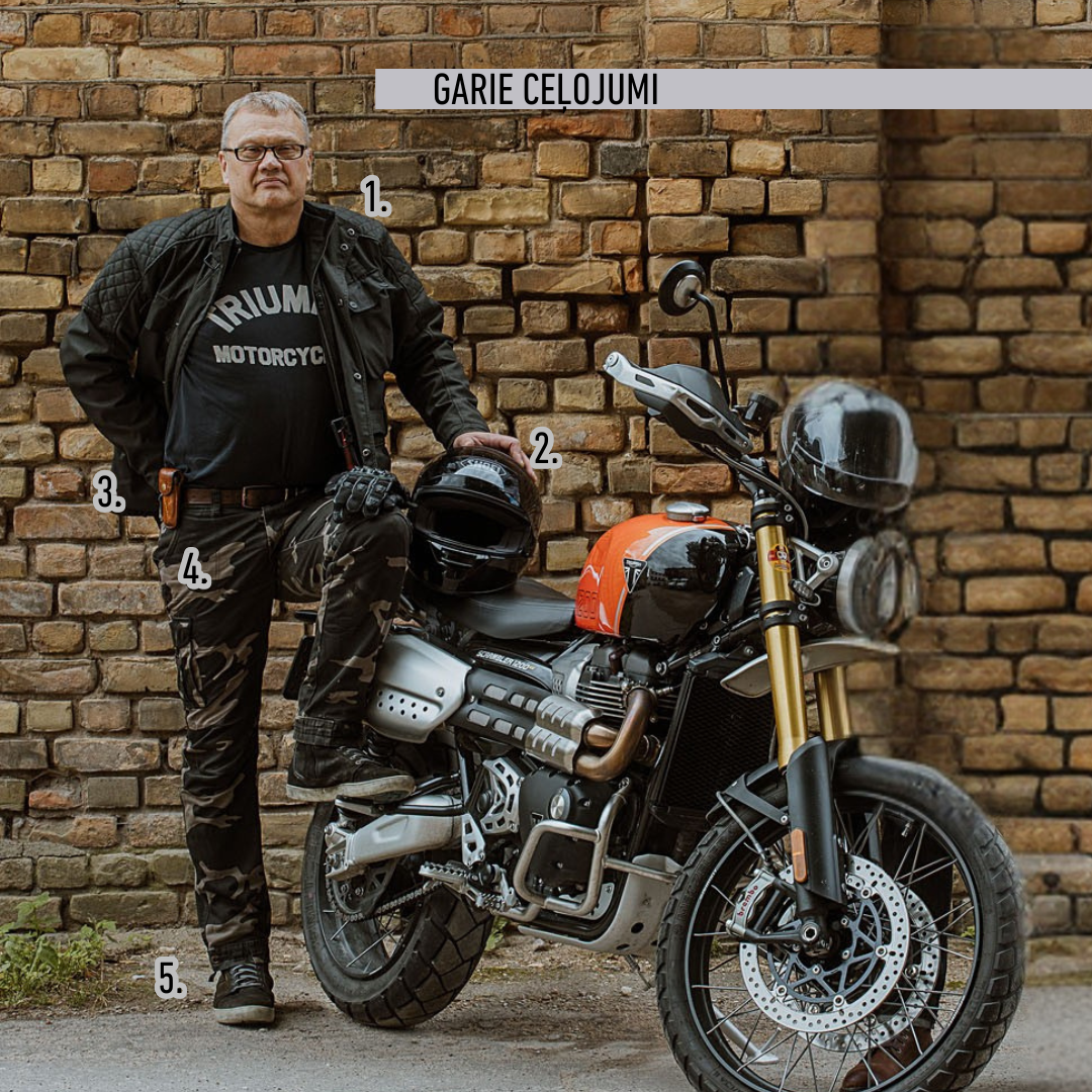 Vismaz vienā lietā esam priekšā gan igauņiem, kuriem viss vienmēr labāk, augstāk, tālāk, vairāk, gan arī leišiem, un tas ir motociklu skaits uz vienu iedzīvotāju. Gribētāju rindas tikt pie braukšanas eksāmena CSDD ir garas, taču ar tiesību nolikšanu viss tikai sākas, un nekas nebeidzas ar motocikla izvēli. Tikpat svarīga un, iespējams, vēl svarīgāka ir ekipējuma izvēle. To, kā uz ceļa justies maksimāli droši, silti, komfortabli un pasargāti, jautājām Arnim Blodonam – Gada motocikla rīkotājam, vienam no motokluba Smart Head dibinātājiem, motobraucējam ar vairāku gadu desmitu pieredzi, kura sirds pieder Triumph. Viņa ieteikumi attiecas arī uz tavu pasažieri!