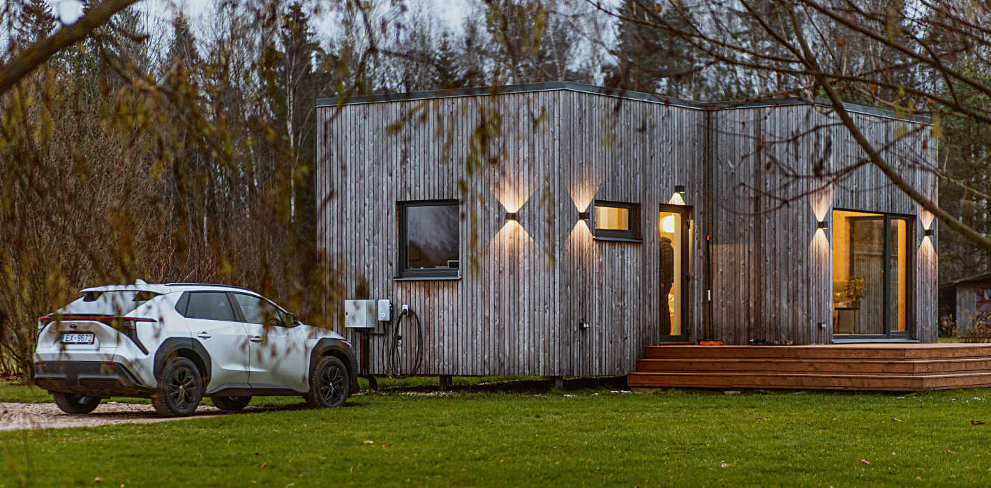 - Mājiņa ir moduļa tipa, iegādāta no ražotāja kā demo variants. Šī ir trešā ziema, kad saimnieki tajā pilnvērtīgi dzīvo.