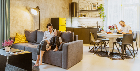 Krāsu risinājums saskaņots ar ainavu aiz loga.