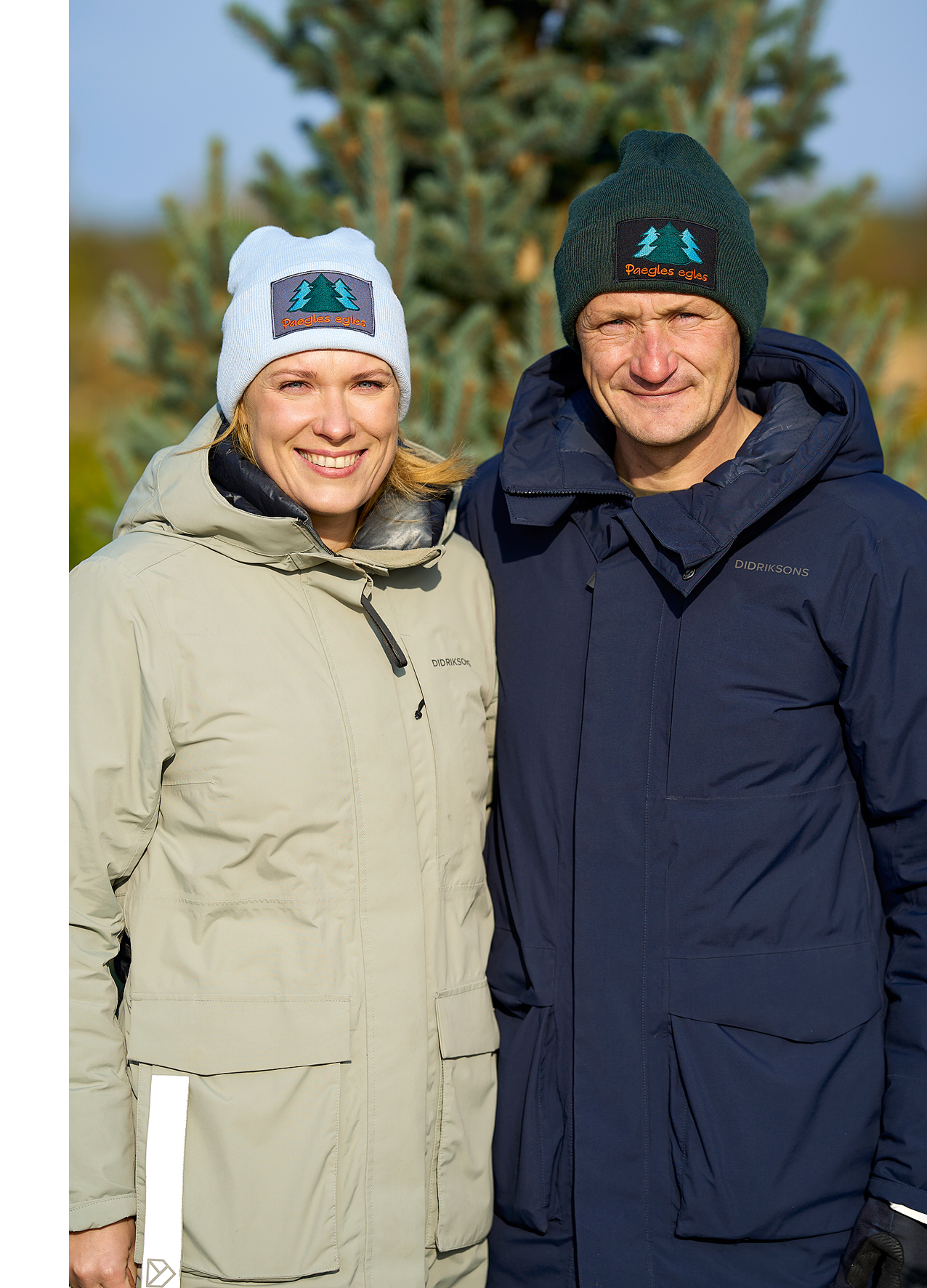 Armands un Gita Ziemassvētkos mājās rotā parasto egli, kuras smarža ir atmiņā no bērnības. «Ļaujam bērniem brīvību egles izvēlē. Pagājušajā gadā viņi izvēlējās trīs metrus garu eglīti, bet, ragaviņās to velkot mājās no lauka pāri lielākai kupenai, nolūza galotne. Labi ka tā, citādi tai griesti būtu par zemu. Bērnībā mums Ziemassvētki likās visskaistākie svētki, bet, kopš audzējam eglītes, tos mazāk sanāk izbaudīt. Lai gan pieņemam papildu darbiniekus, strādājam neēduši, nedzēruši, nosaluši. Tikai Ziemassvētku vakarā izslēdzam telefonus un svinam ģimenes lokā.»