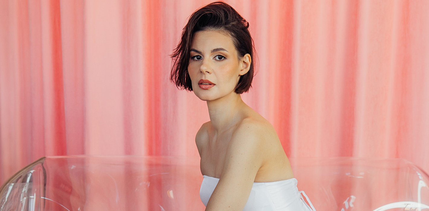 Foto: Aiga Rēdmane. Stils – Laila Trilopa. Grims un matu sakārtojums – Anna Bērziņa. Kleita – Ieva Ādamsone. Apavi no Santas Kirmužas-Svilānes kolekcijas
