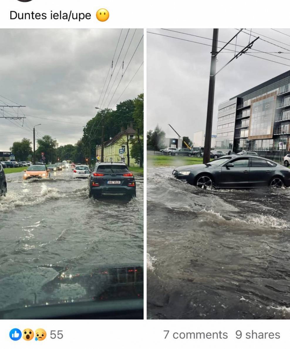 «Rīgas centrā nakts un šī rīta negaisi atnesuši 50 mm nokrišņu, bet privāta meteostacija Sarkandaugavā fiksējusi 84 mm, kas ir pat vairāk nekā visa mēneša norma (78 mm),» sociālajos tīklos raksta laika ziņu moderators Toms Bricis.