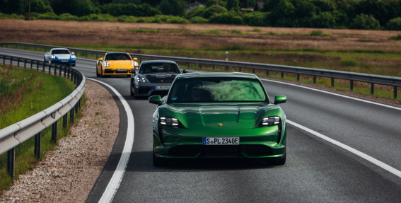 Mūsu grupas sešnieks sastāvēja no «911 Carrera 4S Coupe» ar īpašu «Michelin» krāsojumu, spilgti dzeltena «911 Turbo S Coupe», elektriskā «Taycan Turbo», daudzpusīgā «Cayenne Turbo S E-Hybrid Coupe», daudzu favorīta ikdienas ritējumam «Panamera» GTS un kā deserts pirms pusdienām – «718 Cayman GT4 RS». Tieši pēdējais no šī saraksta rada nesamākslotu emociju lādiņu, kādu citviet nav iespējams saņemt. Sporta auto tiem, kuri jautrību uztver pavisam nopietni un saķeres robežu labāk ķertu, sēžot cieši apņemošā sporta sēdeklī, nevis ādas atpūtas krēslā.