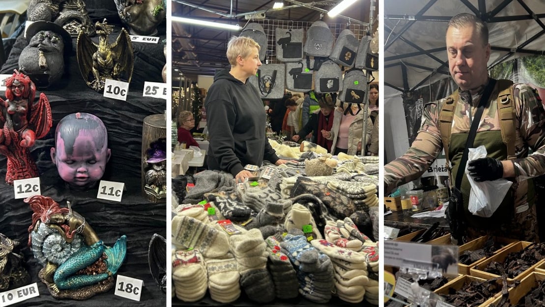 Tāpat kā pērn, arī šogad daudzi tīko sagādāt Ziemassvētku dāvanas vienuviet, un tirdziņš izstāžu hallē Ķīpsalā trīs dienu garumā šādu iespēju patiešām piedāvā. Jau Ziemassvētku tirdziņa darba laika pirmajās stundās hallē čum un mudž no pircējiem.