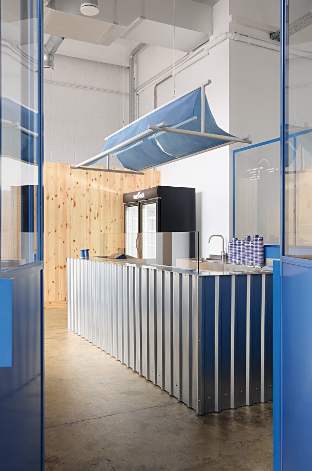 Ražošanas iekārtas pārsvarā ir izgatavotas no nerūsējošā tērauda, tādēļ šis materiāls turpināts arī klientu zonā – letes virsmā, izlietnēs un atsevišķās detaļās.