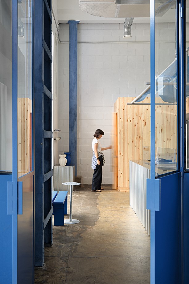 Industriālajā telpā ar teju sešus metrus augstajiem griestiem saglabāti vairāki vēsturiskie elementi, arī betona grīda. «Pateicoties vēsturiskajam uzslāņojumam, tā ir silta un daudzpusīga. Perfekti neperfekta, tonāli krāsaina, nevis vienkārši plakana,» atzinīgi novērtē arhitekts.