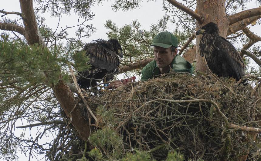 Savulaik līdz jūras ērgļa ligzdai Jānis kāpa sausā apsē, kurai visapkārt stumbram bebrs bija izdzinis reni. Kokam bira miza, zari lūza, ar katru reizi palika mazāk zaru, kur stiprināties, un beigās to nebija vispār. Durbes jūras ērgļu ligzdai Jānis kameru uzlika aukstā 2015. gada janvāra naktī –