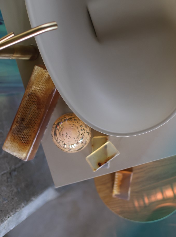 Man īpaša ir CALM kolekcija, jo ar to aizsāku un attīstīju savu rokrakstu. Galerijās, kur to izrādīju, apmeklētāji pie darbiem vienmēr apstājās, lai iedziļinātos. Tie ir dzidra stikla dizaina objekti, kuros delikāti ieplūst balta līnija. Kolekcijai iedvesmojos no miglas – manuprāt, tieši tajā mēs redzam, kā daba elpo. Tas ir brīdis šeit un tagad, kas izgaistot ļauj dabai parādīties košās krāsās un dienai sākt savu ritmu. Ik darbs, ko radu, spoguļo manu pasaules redzējumu.