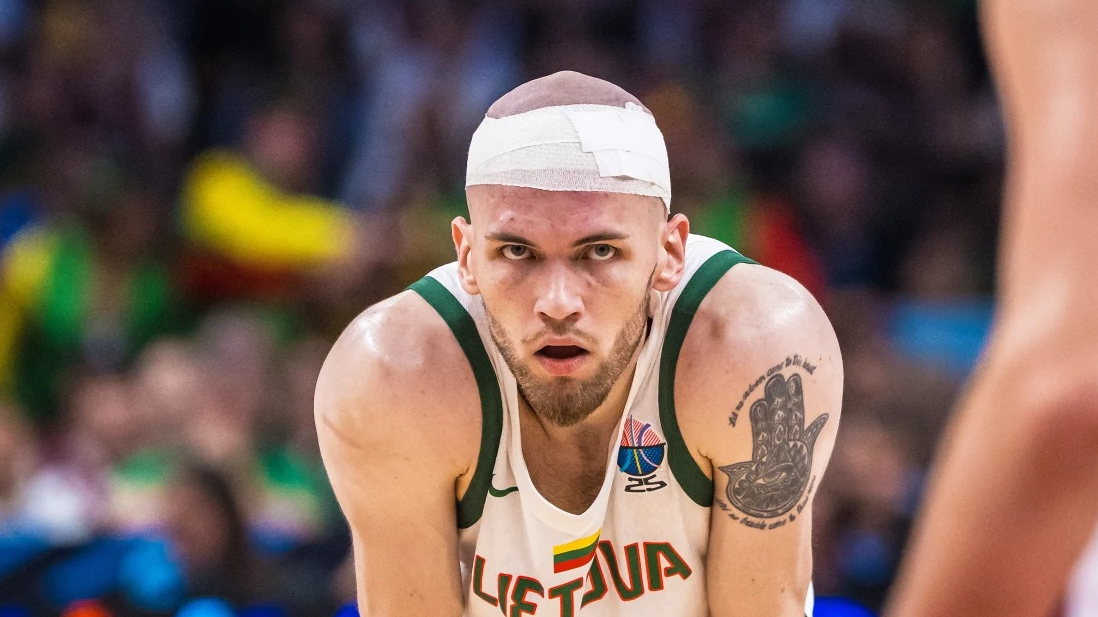 Arnas Velička EuroBasket 2025 turnīra gaitā aizvieto savainoto Roku Jokubaiti, maksimāli izmantojot viņam doto iespēju.