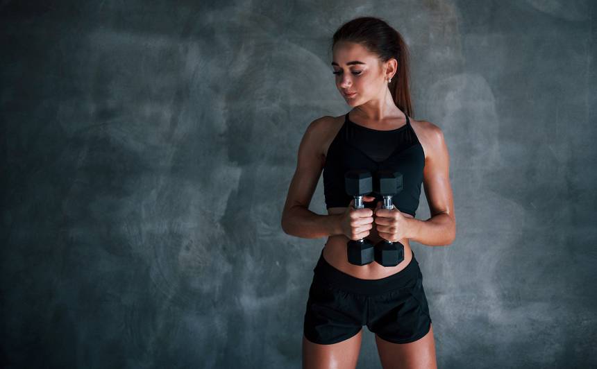 Universāls padoms: spēka vingrojumos, izmantojot svarus, sākt ar 0,5 kg smagām hantelēm – tas ir drošs variants jebkura vecuma sievietei.