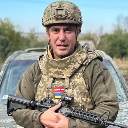Bijušais partijas Konservatīvie biedrs Sandis Riekstiņš jau vairāk kā pusgadu karo Ukrainas pusē. Viņš atzīstas, ka agrāk pat nevarēja iedomāties, ka reiz kļūs par karavīru. «Pirmo reizi ukraiņiem palīdzēju, aizdzenot automašīnu līdz vietai, kas atrodas kilometra attālumā no frontes līnijas. Emocijas bija nervu kutinošas, jo tā bija vieta, kur varēja tikt raidīti šāvieni,» atminas viņš. Vienā no reizēm, kad Riekstiņš bija devies palīdzēt ukraiņiem, kareivji piedāvāja viņam palikt un dienēt armijā.