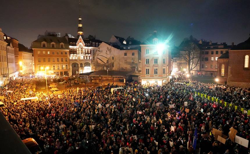 Cilvēki vēl turpina nākt, turklāt pulcējas ne tikai Doma laukumā, bet arī tuvējās šķērsielās.