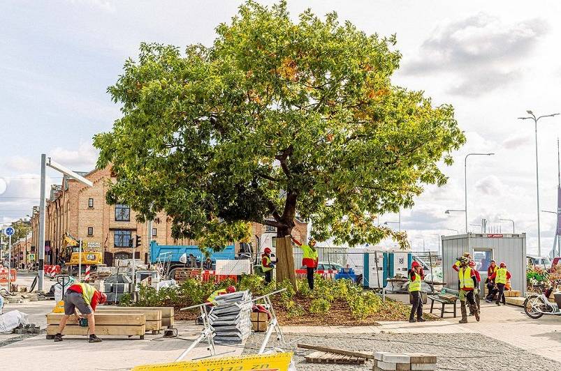 Iespējams, par lielu koku pārstādīšanu vairāk uzzināji, ja palasījies par Rīgas autoostas sarkanā ozola ceļojumu. Koku pie jaunatklātajām starppilsētu autobusu piestātnēm iestādīja 1964. gadā, taču vairāk nekā pēc pusgadsimta Rail Baltica projektos tam vieta vairs neatradās, tātad – bija jānocērt. Tomēr sabiedrība pēkšņi sāka diskutēt – gan par konkrētā koka simbolisko un ekoloģisko nozīmi, gan iespēju to saglabāt, piemēram, pārstādot citā vietā, gan arī par tiem trakajiem, kuri viena kubikmetra malkas dēļ ceļ tādu traci. Jo kas gan ir viens neliels koks megaprojekta vidū? Tomēr ozolu pārstādīja, kaut tas bija tehniski sarežģīti: tam traucēja ne tikai apakšzemes komunikācijas, bet arī tramvaja kontakttīkli, un pati pārvietošana ilga deviņas garas nakts stundas. Sākumā ar celtni 40 tonnas smago koku ar metāla palīgkonstrukcijām iecēla treilerī, tad veda 150 metrus līdz vietai Ģenerāļa Radziņa krastmalā, kur tas turpmāk stāvēs. Savu artavu sarežģītībā sniedza arī koka pārstādīšanai ļoti nepiemērotais laiks – jūnija vidus, kad lapotne ir pašā kuplumā.