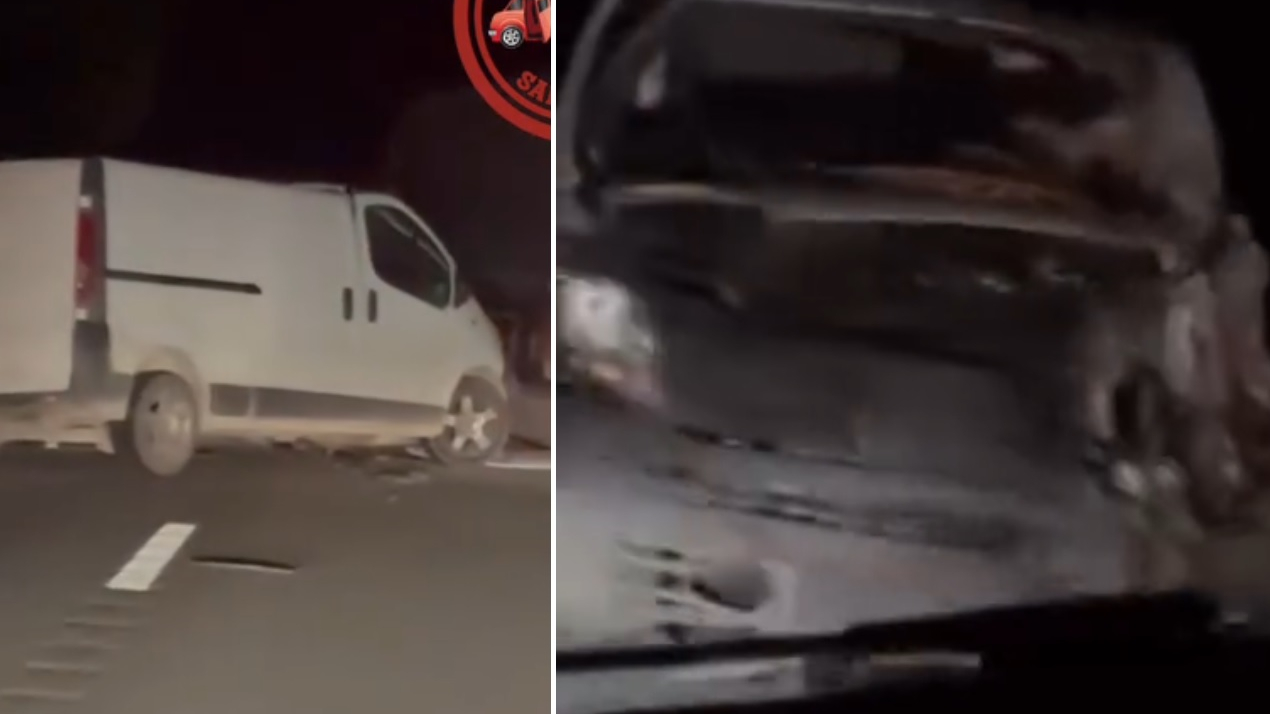 Video redzams, ka sadursmē cietis kravas furgons un smagais kravas auto.