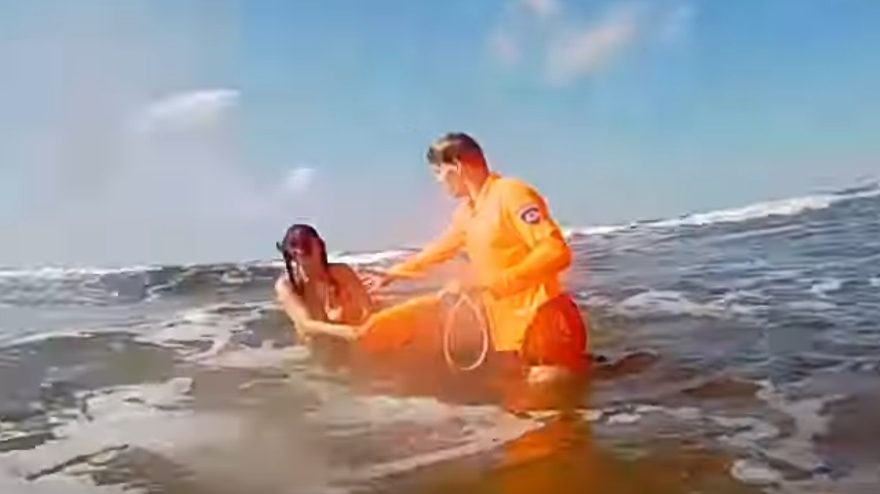 Lielo un spēcīgo viļņu dēļ sieviete pašas spēkiem nespēja noturēties kājās un nokļūt krastā. Pamanot notikušo, pašvaldības policisti skrēja pie sievietes un, izmantojot glābēju boju, viņu nogādāja krastā.