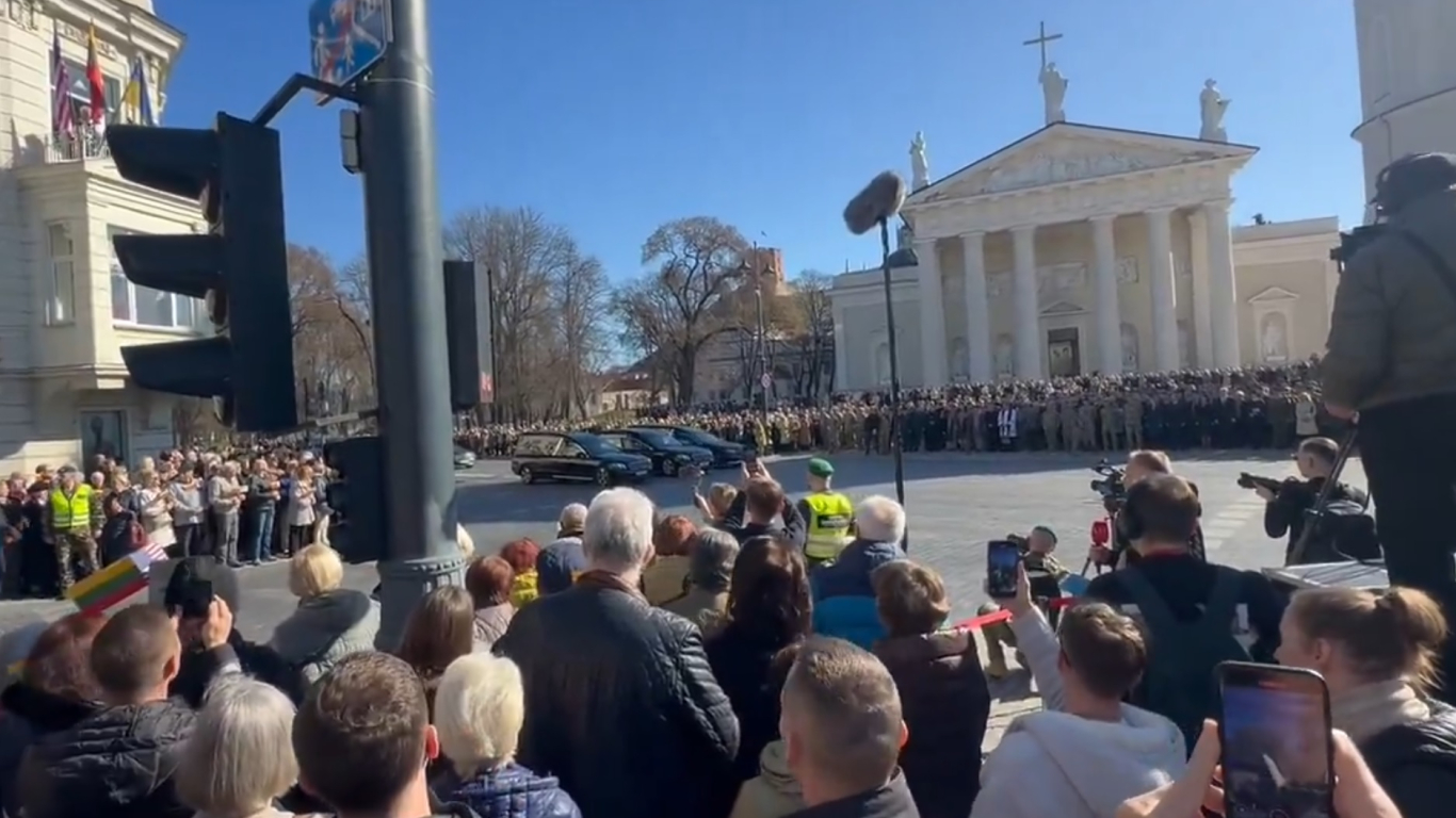 No Katedrāles laukuma kortežs devās pa Ģedimina prospektu uz Viļņas lidostu, no kurienes mirstīgās atliekas tiks pārvestas atpakaļ uz dzimteni.