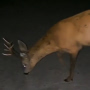 Video redzams, ka vīrietis savā tuvumā pamana stirnu buku un draudzīgi cenšas viņu pasaukt tuvāk, lai iedotu sēni.