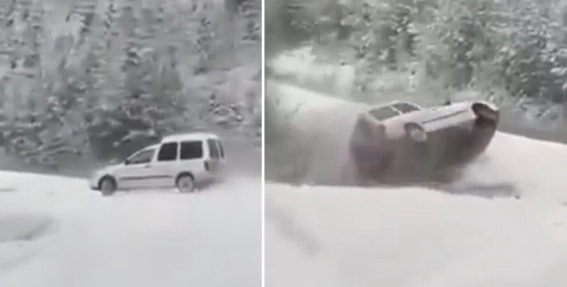 Video redzams, kā aiz BMW markas spēkrata tiek vilkts cilvēks uz riepas kamerai līdzīga objekta. Veicot kreiso pagriezienu, autovadītājs neaprēķina braukšanas ātrumu un trajektoriju, tādejādi aizmugurē esošais kaskadieris noslīd no ceļa braucamās daļas un ietriecas ceļa zīmē.