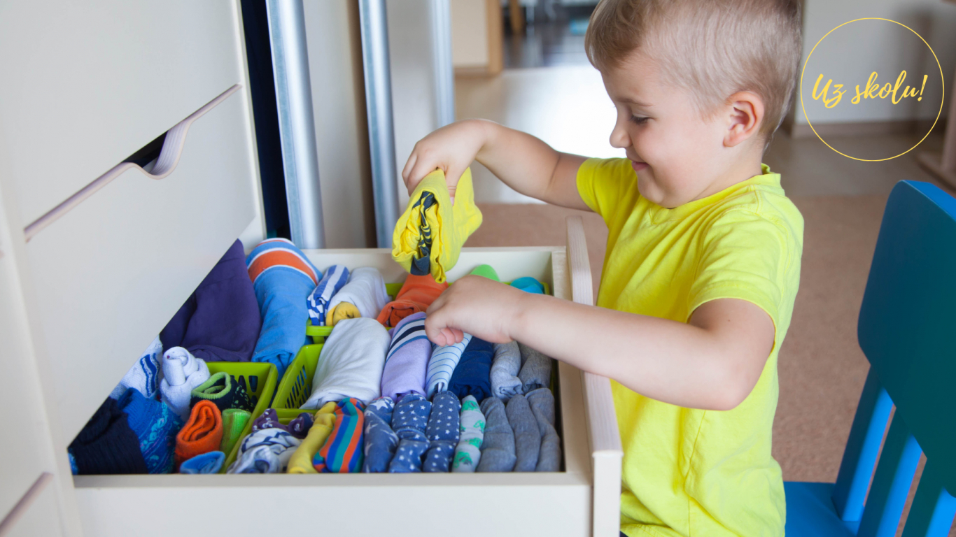 Kā mēs visi zinām, darbadienu rīti ir steidzīgi. Apģērba meklēšanu no rītiem atvieglos organizēta un sistemātiska kārtība. Ja iespējams, sadali apģērba kategorijas pa kastītēm: t-krekli ar īsām vai garām piedurknēm, bikses, jaciņas un tamlīdzīgi. Atdali skolas drēbes no mājas drēbēm. Tas aiztaupīs rīta diskusijas par to, kāpēc ar mājas treniņbiksēm nedrīkst iet uz skolu un, kāpēc ar skolas formas vestīti nevar spēlēties mājās. Tāpat, atsevišķi ieteicams likt svinīgo apģērbu. Tādējādi bērns iemācīsies atbilstoši ģērbties uz konkrētiem svētku pasākumiem.