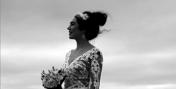Tērpusies rozā kleitā, kas izceļ viņas grūtnieces puncīti, un ap galvu aplikusi lakatu, seriāla Nemīlētie zvaigzne izskatījās, teju kā no renesanses dižgaru gleznas izkāpusi madonna.