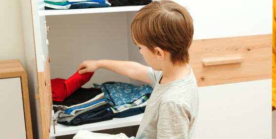 Nākamajā atvilktnē var kārtot ikdienai nepieciešamās drēbītes. Kā tās sašķirot? Ja mazajam ir daudz bikšu, vienu kasti var piepildīt ar siltākām, otru – plānākām. Bodijus var dalīt pēc toņiem (vienkrāsaini un raibi) vai pēc biezuma (plānāki un biezāki). Ja nepieciešams, atsevišķās kastītes ar apģērbiem atvilktnē var mainīt vietām.