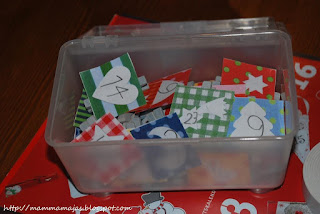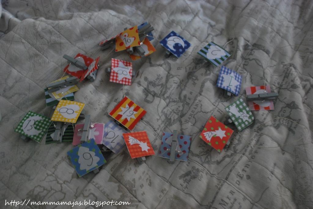 Šogad mēs kopā ar vecāko dēlu esam pagatavojuši Adventes kalendāru – virtenes formā, ko plānojam piekārt pie kādas no sienām. Katrā dienā bērniem būs ne tikai mazs našķītis, bet arī kāda aktivitāte. Bet tā kā iepriekšējo gadu pieredze mācīja to, ka katrai dienai konkrētā aktivitāte mēdza nobīdīties no grafika, jo, piemēram, attiecīgajā dienā kādam nebija luste cept piparkūkas, vai arī pie mums kāds ciemojās un aktivitāte tika atcelta, tad šajā gadā es plānoju 24 dažādas aktivitātes, kuras būs iespējams izvēlēties katru dienu. Tas nozīmē, ka es pirms tam būšu jau sagatavojusi dažādas nodarbes bērniem, bet mēs tās realizēsim pilnīgi spontāni, attiecīgi no noskaņojuma un iespējām! Bet par tām smalkām, kādā no citiem rakstiem ;)