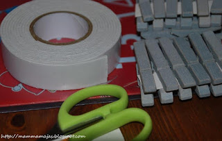 - Katram knaģim vienā pusē pielīmē abpusējo līmlenti;