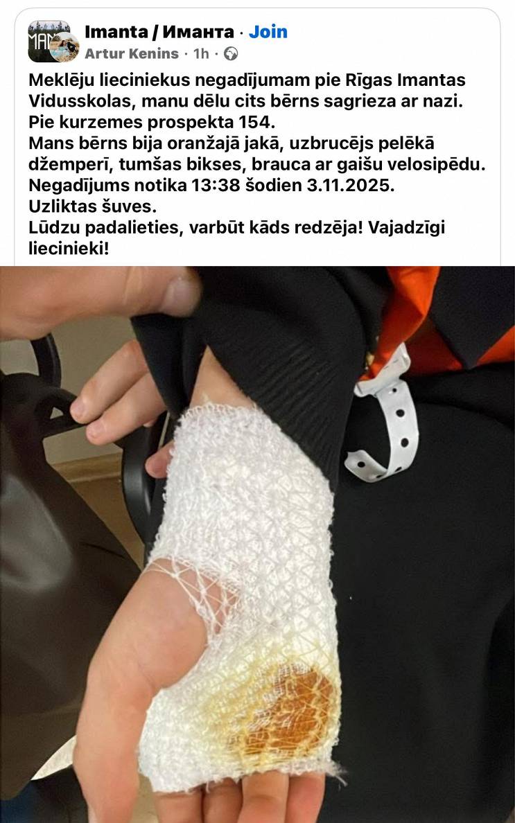 «Lūdzu, padalieties ar šo informāciju. Varbūt kāds redzēja! Vajadzīgi liecinieki,» raksta tēvs savā «Facebook» ierakstā.