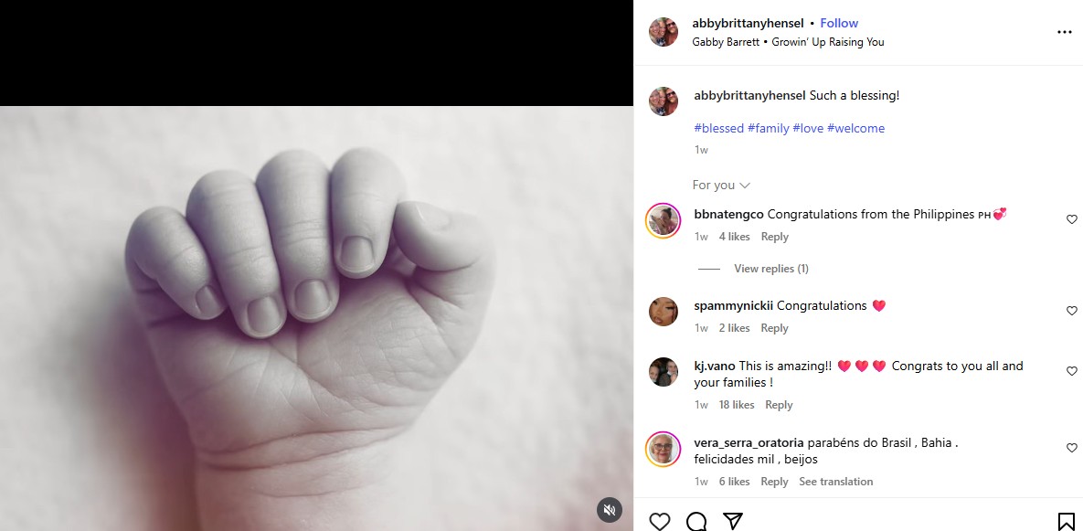 Tagad viņas bērna piedzimšanas faktu apstiprinājušas, ievietojot sociālajos tīklos mazuļa rociņas foto ar parakstu – «Liela svētība».
