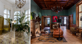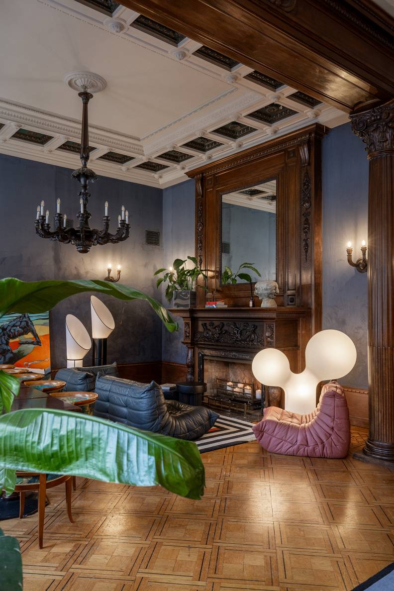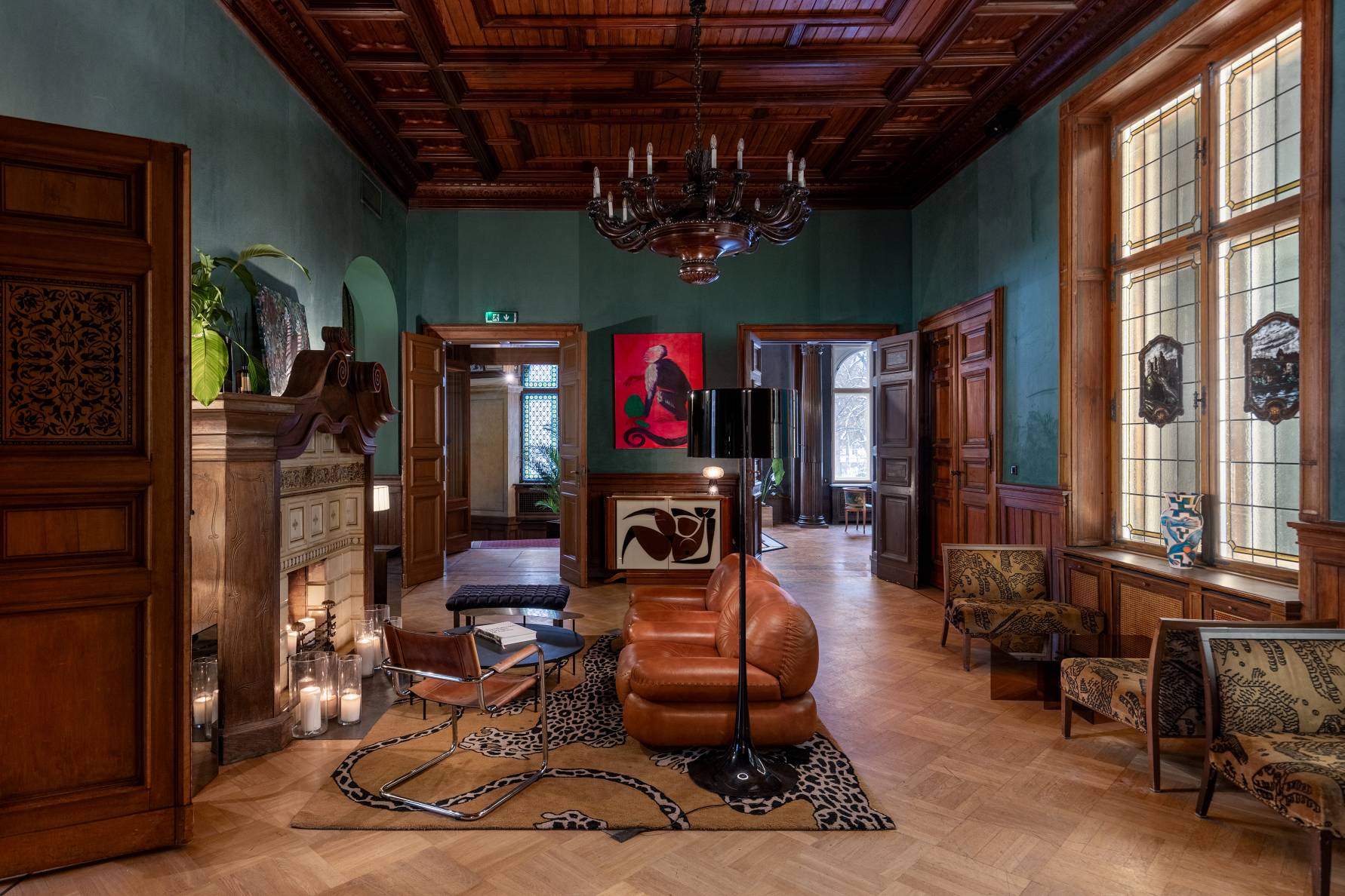 Godājot nama vēsturisko vērtību un stāstu, jaunā saimniece interjerā ienesusi arī moderno mākslu. «Pagātnes interjers ir tik spēcīgs, ka ar to mūsdienās konkurēt nav vērts – saikne ir jāveido, pretī liekot šodienu. Maksimāli izmantojām namā jau bijušās mēbeles, pārvelkot tās ar ikoniskiem audumiem no Itālijas, ieliekot dizaina mēbeles, kas runā pašas par sevi. Man svarīgi, ka piešķiram lietām otro, trešo un piekto dzīvi, tāpat kā namam, – ļaujot visam dzīvot tālāk.»