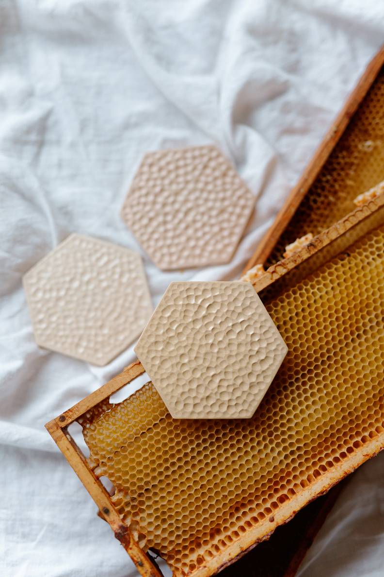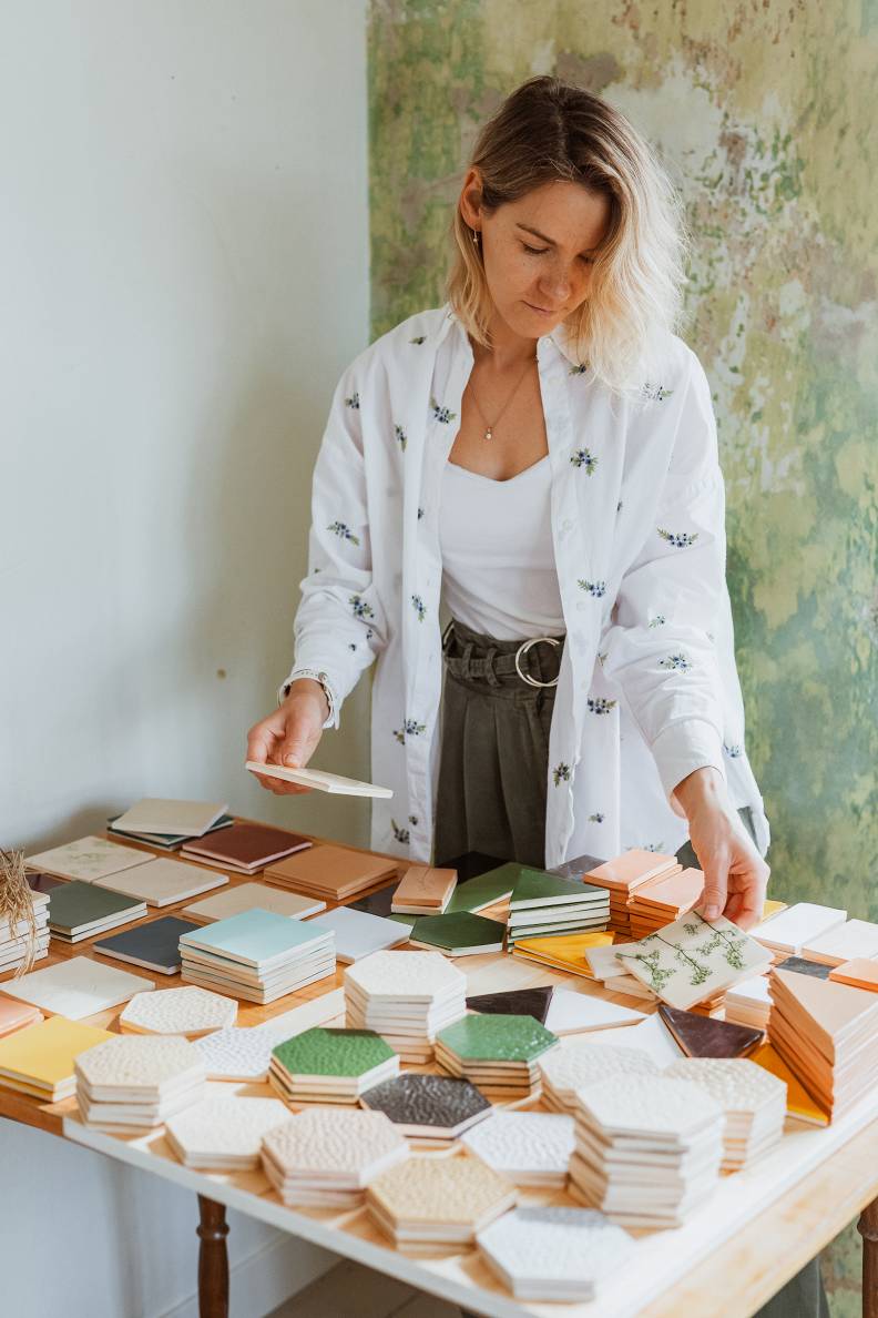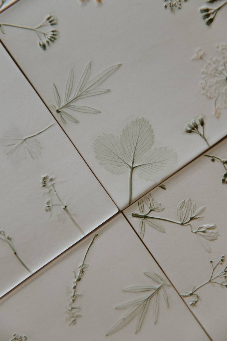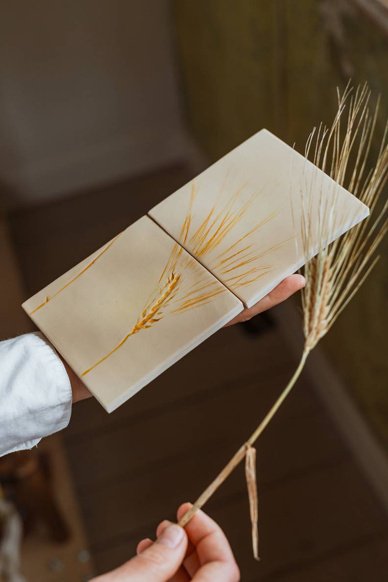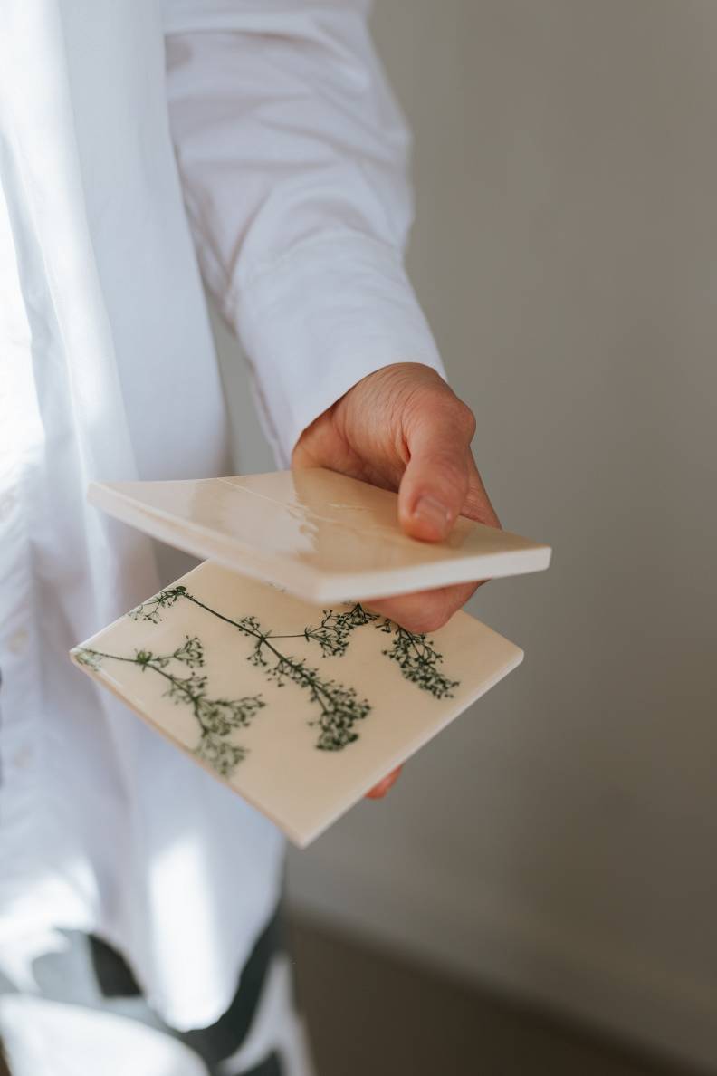 Pamazām Amandas virtuve sākusi pārvērsties par īstu keramikas darbnīcu. Pirmie radītie trauki bijuši glāžu paliktnīši ar augu iespiedumiem, kas vienlaikus atspoguļoja keramiķes mīlestību pret dabu un vēlmi radīt ko patiesi unikālu. Kad pienācis laiks fotografēt māla pamatnītes, tās atstutējot pret sienu, pēkšņi izkristalizējusies skaidra vīzija – to vietā jābūt flīzēm.
