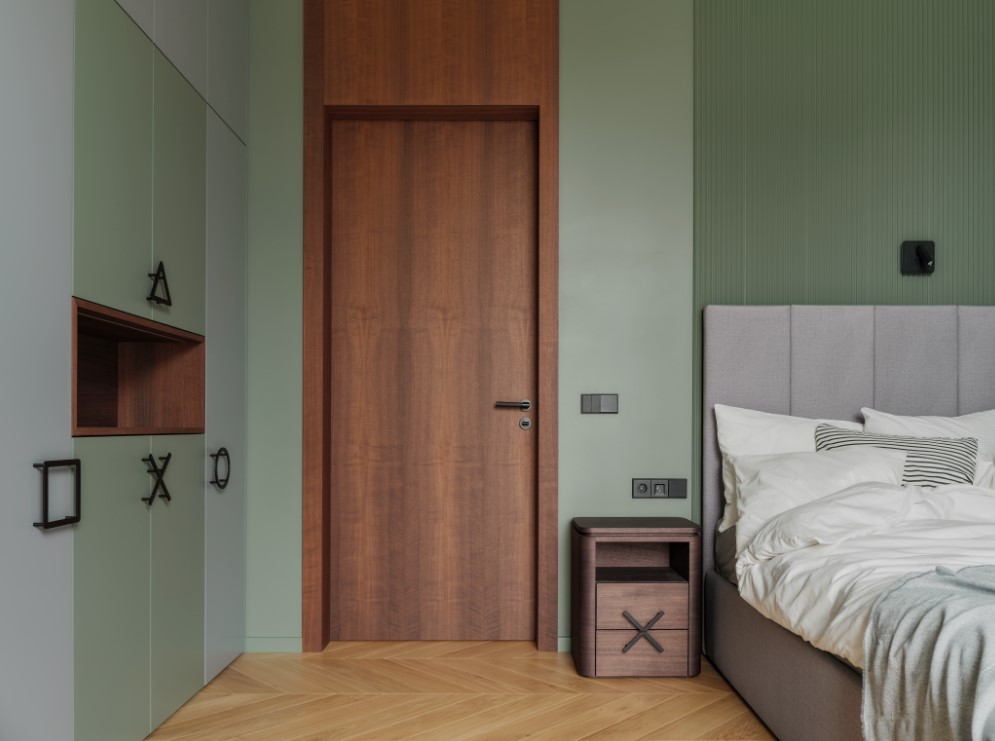 Kopējā mājas noskaņa turpinās arī bērnu istabās. Lai gan dēls un meita vēl ir mazi un katram istaba ieturēta maigā vecrozā vai pelēkzaļajā tonī, arī te mēbelēs iestrādātas riekstkoka detaļas, kas harmonē ar pārējo ēkas interjeru. Šī rūpīgi veidotā saskaņa interjerā ļauj mājai atspoguļot tās iemītnieku gaumi un ikdienu.