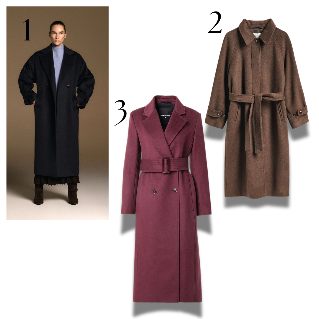 Gari, taisna silueta, šūti no buklē vai blīva vilnas auduma. Tāds mētelis lieliski pasargā no sala un vēja, vizuāli pagarina figūru un liek izskatīties staltai. Ja gribi akcentēt vidukli, izvēlies modeli ar jostu.