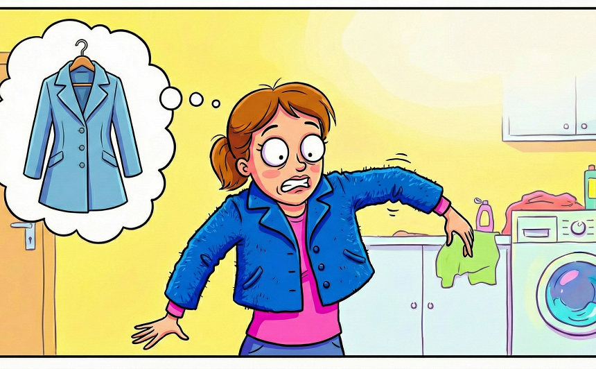 Ieliec mēteli veļasmašīnā. Palaid to un turpini sapņot par sevi zilajā mētelī.