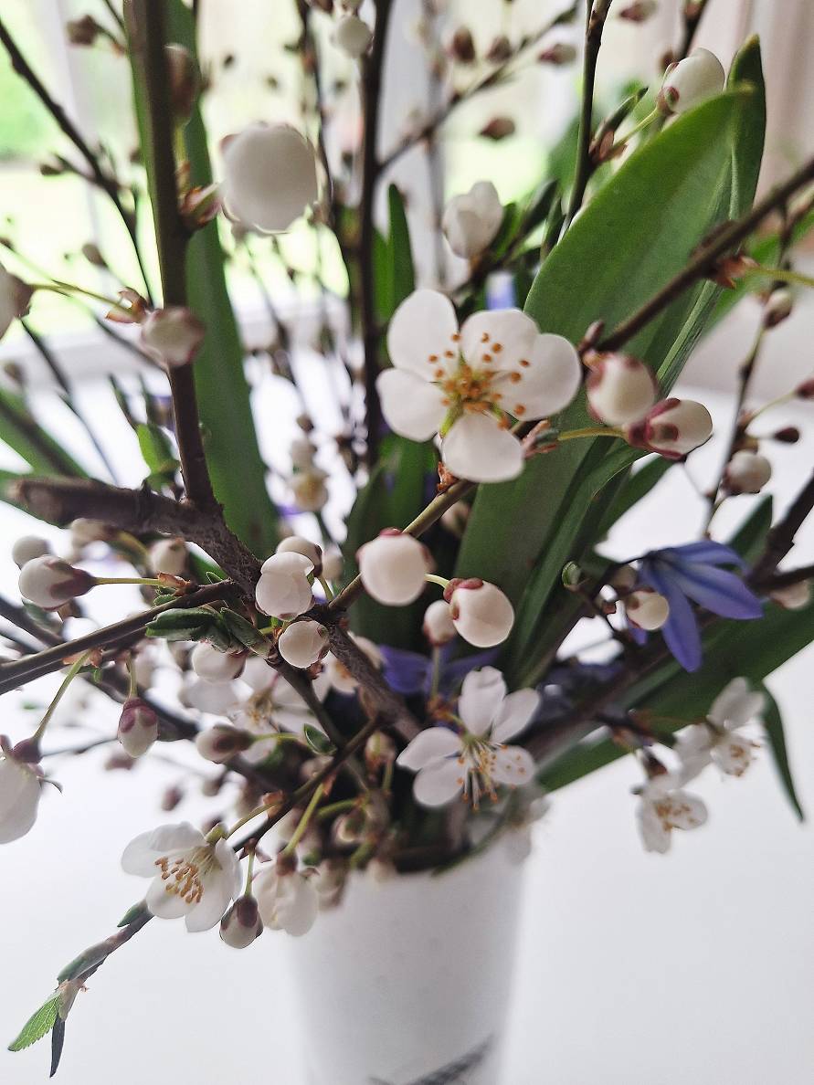 - Aličas jeb Kaukāza plūmes zari. Tie var kļūt par vienu no agrākajiem plaukstošajiem brīnumiem tuvplānā uz galda, jo arī dabā šī plūmes zied agri. Papildinot ar pavasara ziediem, piemēram, debeszilām zilsniedzītēm, var iegūt ļoti skaistu kompozīciju.