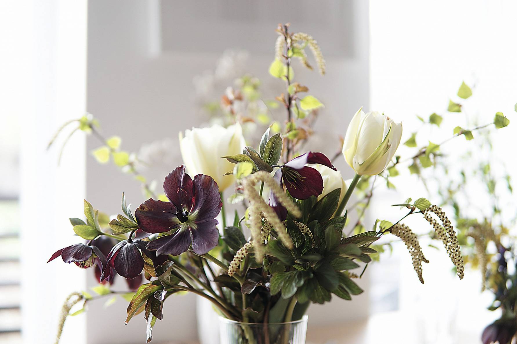 Tāpēc mans ieteikums – atrodiet krūmu džungļus, brieniet iekšā un nogrieziet pa drusciņai no visa kā, pievienojiet kādu ziedu un nolieciet šo vāzi sev redzamā vietā! Tikai tad, ja vāze visu laiku būs acu priekšā, varēsim ieraudzīt un novērtēt, cik krāšņas un daudzveidīgas ir pavasara toņu nianses. Mans absolūtais pavasara kompozīciju favorīts vāzēs ir kļavu zari kopā ar tulpēm.»