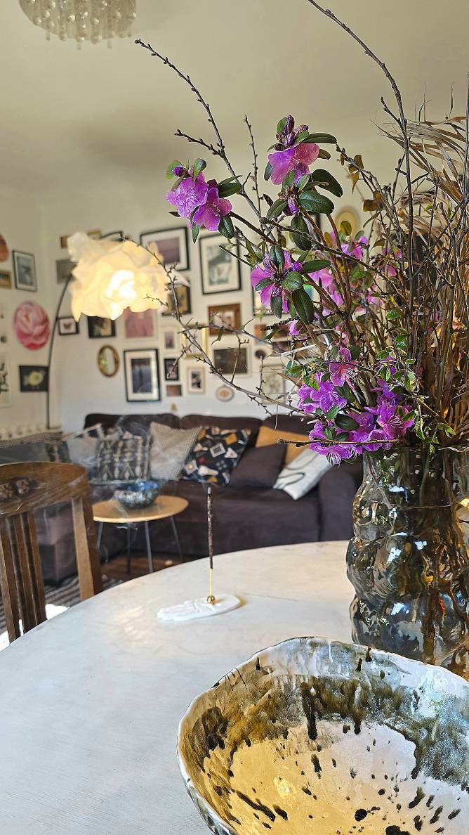 Ieva Kampe-Krumholca, gleznotāja: «Kompozīcijas vāzēs veidoju regulāri, un, pavasari gaidot, tajās vienmēr ir plaukstoši zari. Pat tikai no dažādiem zariem vien var izveidot interesantu augu kombināciju vāzē – katram kokam pumpuri un pirmās lapiņas ir citā, atšķirīgā tonī. Un ne vienmēr vajag fokusēties uz ziedošiem zariem – arī lapas izskatās ļoti interesanti, īpaši dekoratīvas tās ir, piemēram, plūškokam, kļavai, spirejai, kā arī dažādiem ceļmalu brīnumiem, kurus vārdā nemaz nemāku nosaukt.