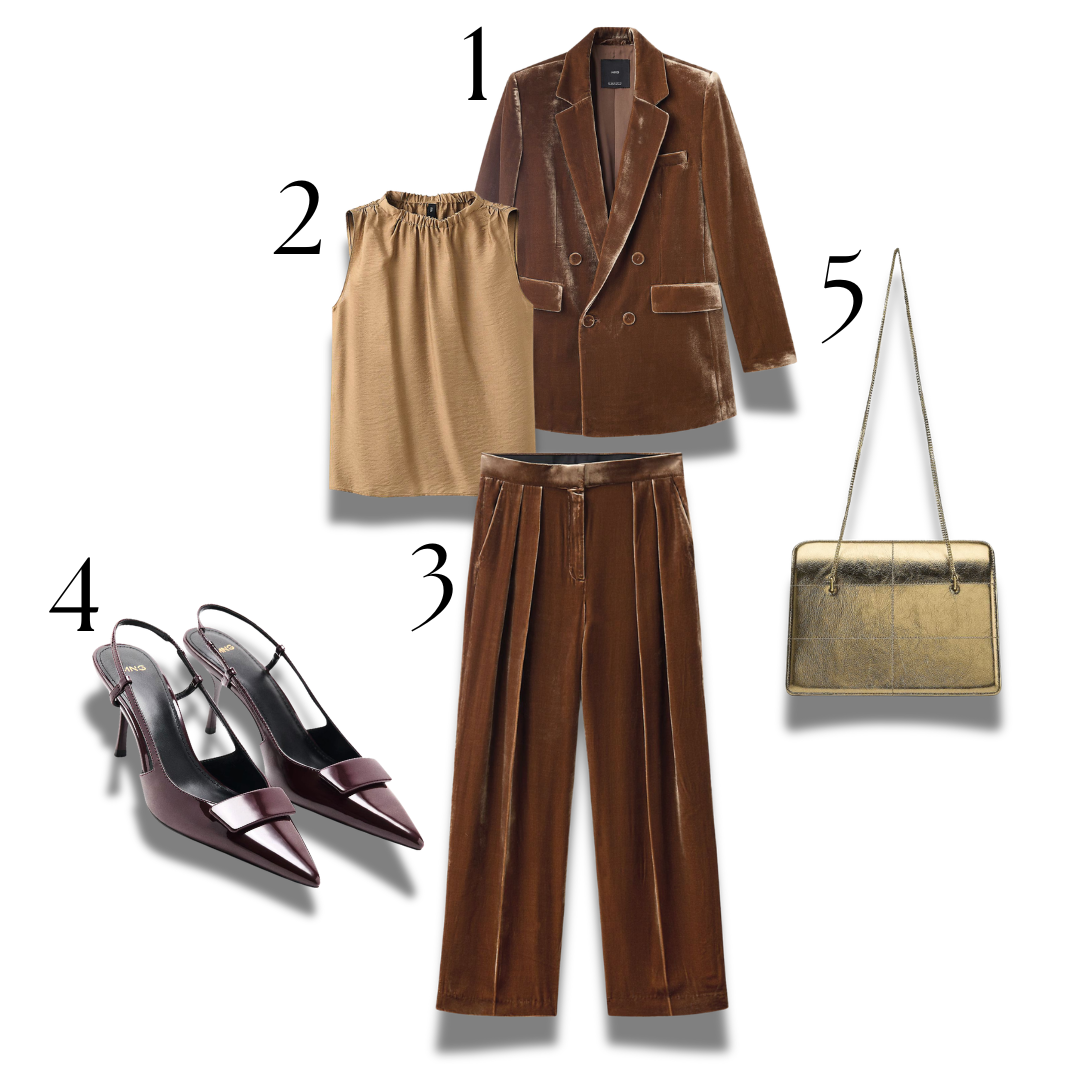 - Brūns satīna tops – 35 € shop.mango.com