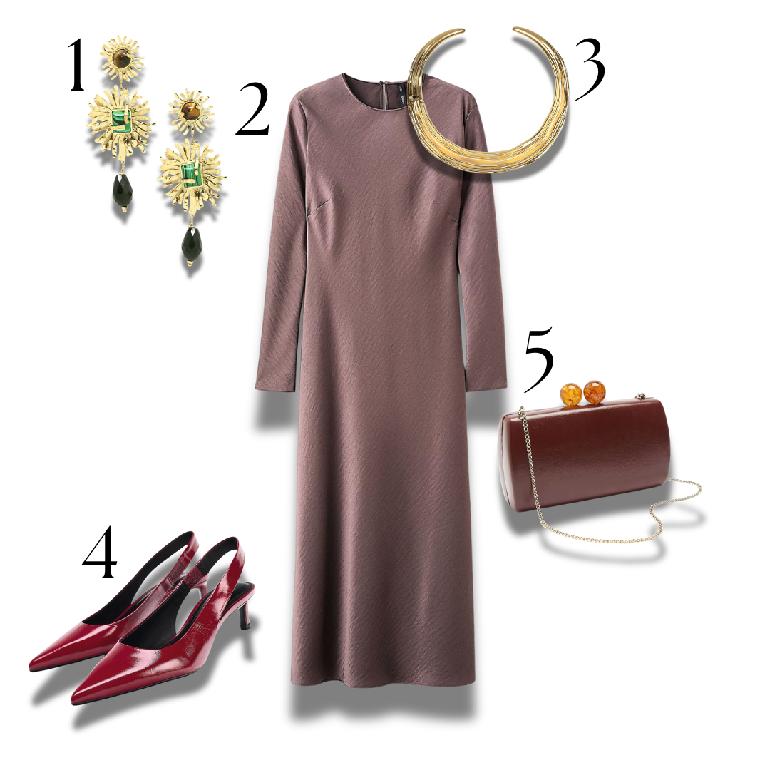 Lieliska izvēle ir vienkārša piegriezuma midi garuma kleita. Bez pārmērīga daudzuma volānu vai citu dekoratīvu elementu – atturīga un eleganta. Tagad, ziemā, piemērotāki būs modeļi ar garām piedurknēm – vai nu ar kuplu svārku daļu un izteiktu vidukļa līniju, vai pilnīgi taisna silueta. Šādai kleitai var būt šķēlums apakšdaļā, ne pārāk dziļš dekoltē vai atsegta plecu līnija. Modeļus ar īsām piedurknēm vai bez tām vari papildināt ar žaketi – tā var būt pieguloša vai brīva, vīrišķīga piegriezuma.
