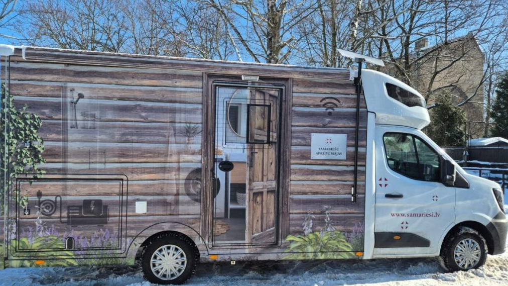 Šo pakalpojumu nodrošina biedrība Latvijas Samariešu apvienība. Jau desmit gadus septiņas Samariešu automašīnas, kas aprīkotas ar mājas aprūpes minimumu vientuļiem senioriem vai cilvēkiem ar invaliditāti, kuriem nav pieejama mūsdienīga infrastruktūra, nodrošina iespēju, piemēram, nomazgāties siltā dušā, sakopt pēdas un matus, izmazgāt veļu veļasmašīnā.