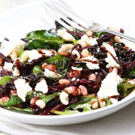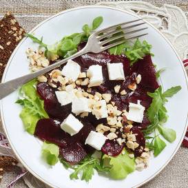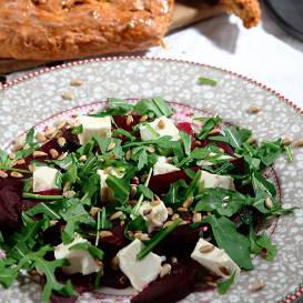 Salāti ar bieti un sieru un valsts karogs uz šķīvja gatavs!