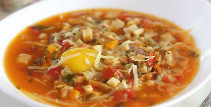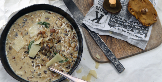 - Zupu atkal uzkarsē un pievieno gabaliņos sagrieztu brī sieru, kam nomizota pelējuma garoziņa, labi samaisa, lai tas izkūst.