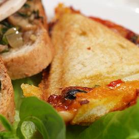 - Liek atkal krāsnī, grilē dažas minūtes, līdz siers pakūst un kļūst zeltains.