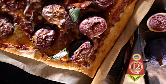 6. Pārkaisa sāli un piparus, pievieno vīnu, balzametiķi. Izņem timiāna zariņu, pārber vienmērīgi ar sieru un pārklāj ar mīklu, maliņas ielokot uz leju. Ja vēlas, var mīklu apsmērēt eļļu vai sakultu olu.