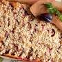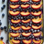 Visas pamatnes mīklas sastāvdaļas liek kopā, samīca un ieklāj ar taukvielu iesmērētā vai ar cepampapīru izklātā apmēram 20 × 30 cm lielā cepamveidnē ar augstām malām, pārber ar mellenēm.