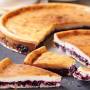 Biezpienu, lai tas nebūtu graudains, sablendē vai izberž caur sietu, pievieno un iemaisa pārējās sastāvdaļas, pārliek mīklai ar mellenēm, nolīdzina.