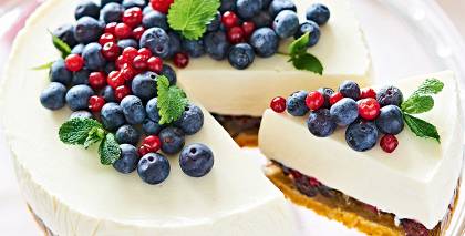 - Pirms pasniegšanas kūkai noņem veidnes riņķi. Izspiežot ar konditorejas uzgali vai vienkārši uzklājot, grezno ar saputotu krējumu, kam pievienots pūdercukurs un vaniļas cukurs.