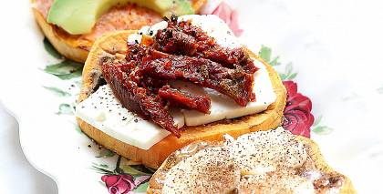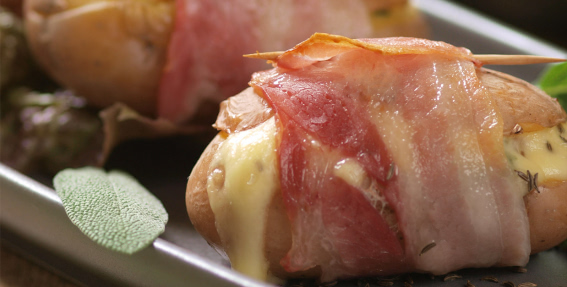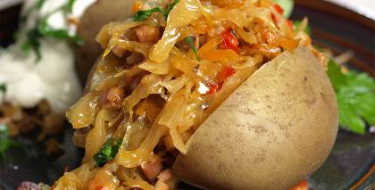 - Ceptās batātes dziļi visā garumā iešķeļ, piepilda ar sagatavoto maisījumu, pārber atlikušo sieru.